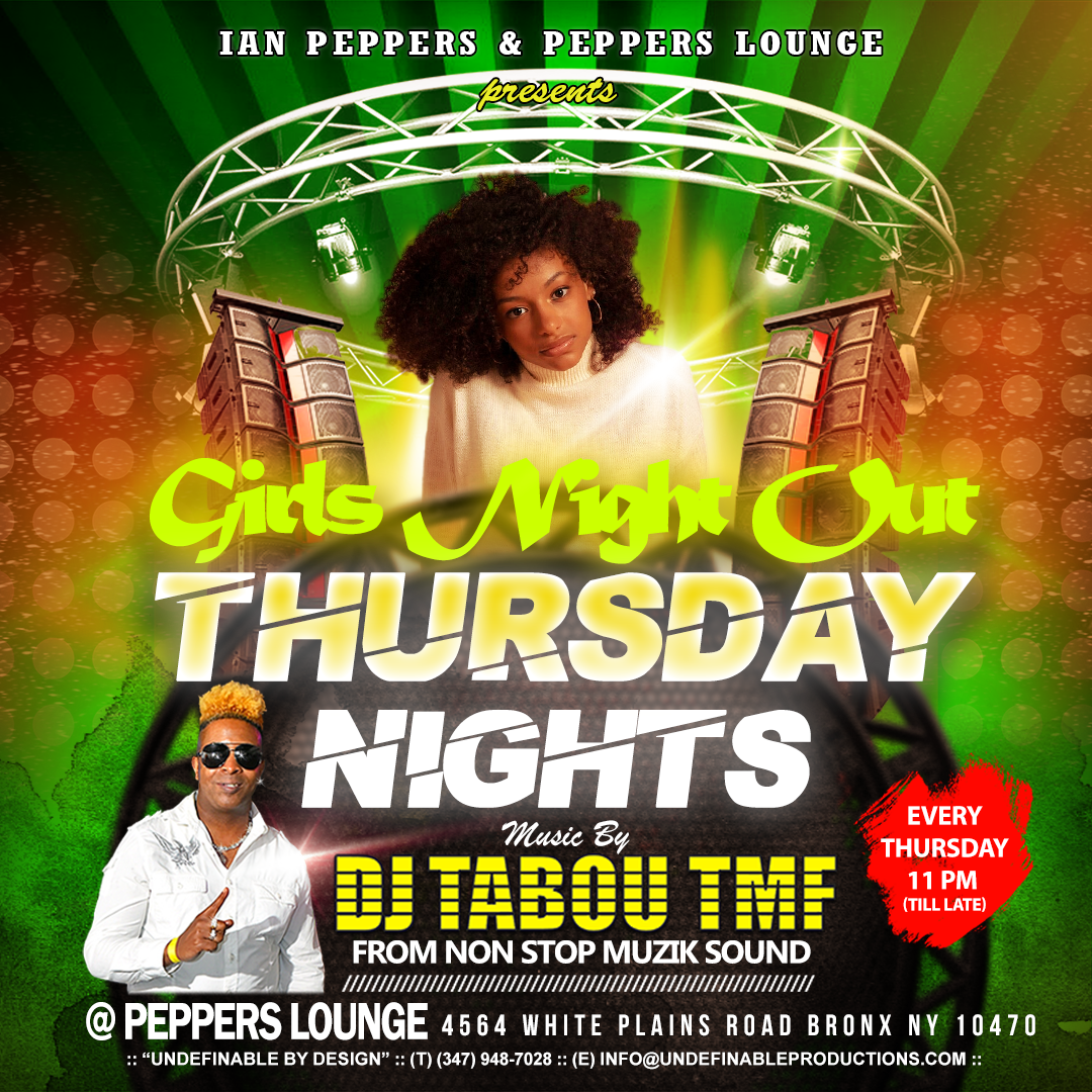 DJ Tabou TMF at Peppers Lounge – Girls Night Out – Thursday Nights – (1) (Square) Published November 30, 2024 at 1080 × 1080 in DJ Tabou TMF at Peppers Lounge – Girls Night Out – Thursday Nights – (1) (Square) Tweet Tweet Like this? Share it! Spread the Love 🙂TweetShare on Tumblr